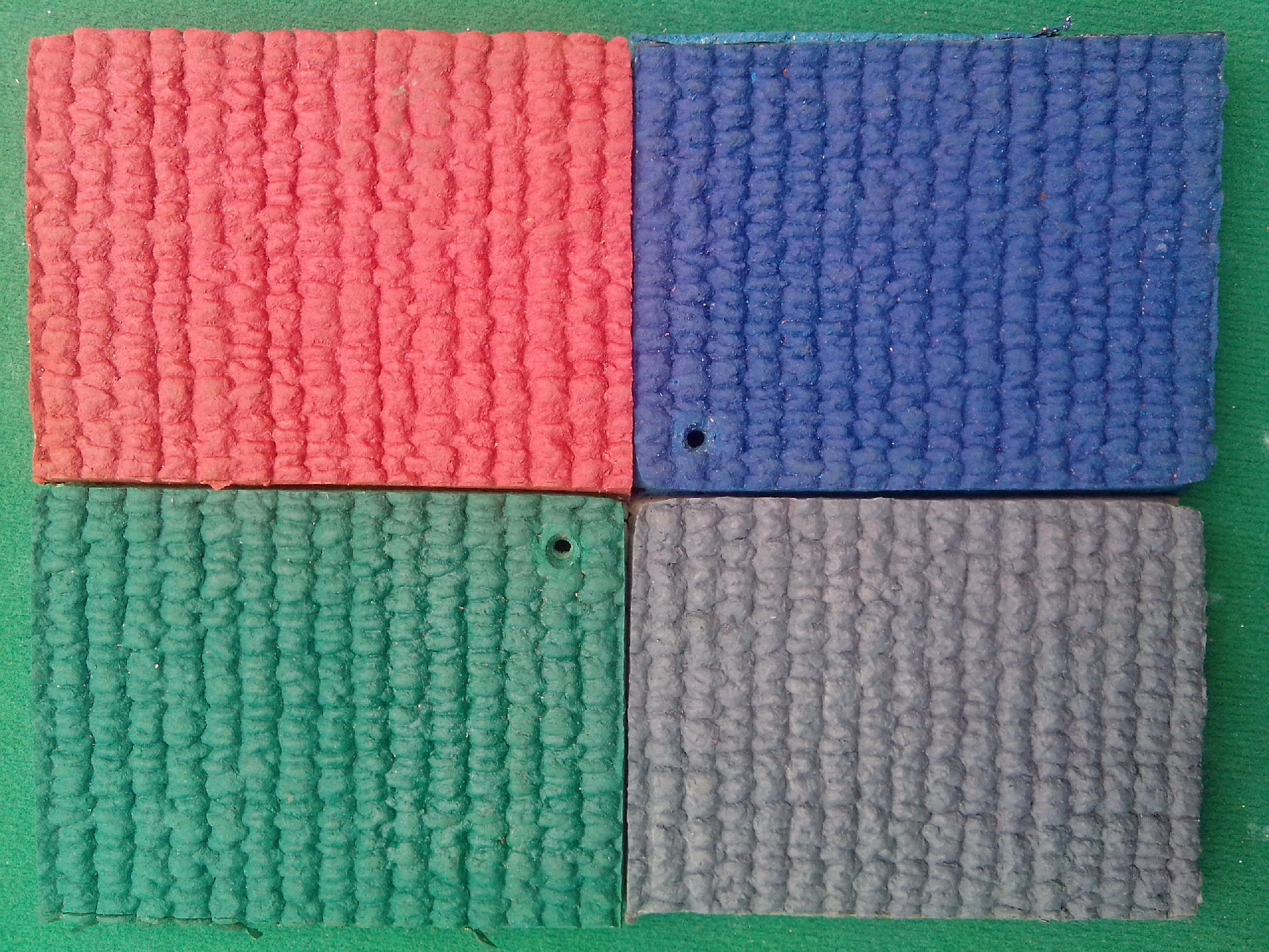 【上層為彩色復(fù)合橡膠】,具有長久抵御紫外光及多變氣候、氣象條件影響的性能,凹凸圖案面層設(shè)計,具有優(yōu)良的防滑、抗尖釘、抗磨損、抗反光作用。
