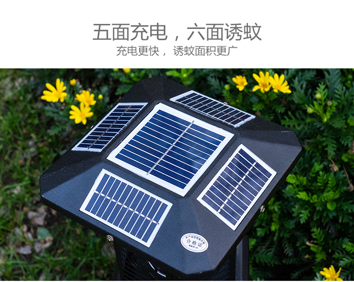 3、五面太陽能板,充電更快。六面誘蚊電網,面積更廣。