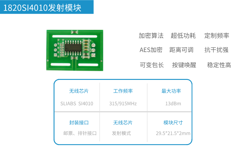 采用SKUABS的SI4010工業(yè)級無線芯片,出長編碼,,42億地址碼,接收穩(wěn)定安全,抗干擾,防破解,AES加密,無線FSK可定制協(xié)議,功能,外形,距離更可達(dá)到200米以上,此模塊可加裝在充電槍內(nèi)