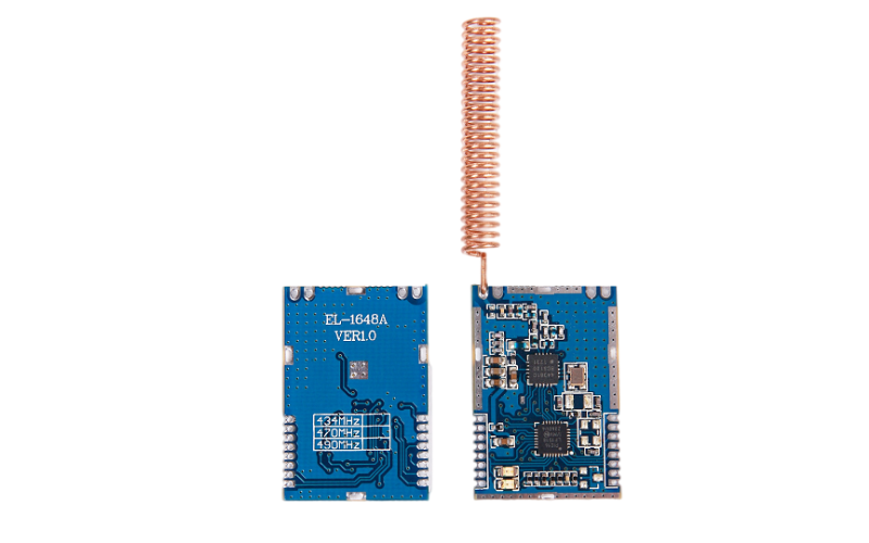 EL_1648A 系列是一款低成本,高性能的 FSK 無(wú)線透明數(shù)據(jù)收發(fā)模塊。可工作在 433/470/490MHz ISM 頻段。具有尺寸小,功率大,靈敏度高,傳輸距離遠(yuǎn),通訊數(shù)率高,內(nèi)部自動(dòng)完成通訊協(xié)議轉(zhuǎn)換和數(shù)據(jù)收發(fā)控制等特點(diǎn)。無(wú)須再外接MUC,直接用串口就可以進(jìn)行無(wú)線數(shù)據(jù)的收發(fā)。大大縮短了的用戶的開(kāi)發(fā)周期。EL_1648A 系列模塊可廣泛應(yīng)用于各類(lèi)無(wú)線數(shù)據(jù)傳輸領(lǐng)域,是設(shè)計(jì)無(wú)線數(shù)據(jù)傳輸產(chǎn)品的理想選擇。